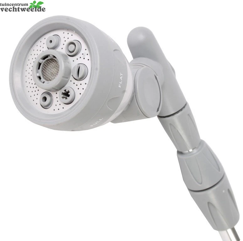 Broes met verlengstuk, 7 verschillende waterstralen, en kantelbare broeskop.